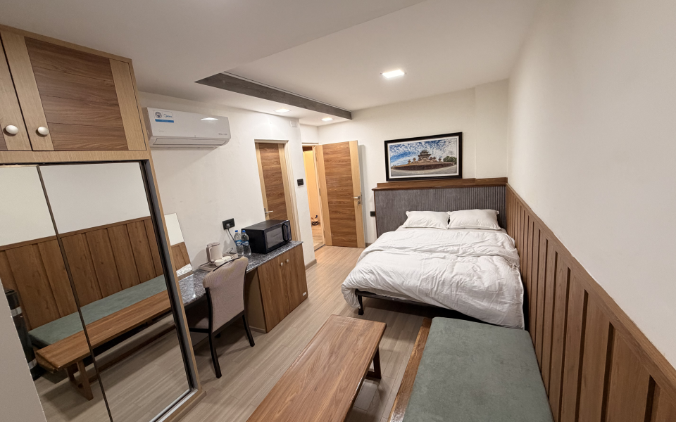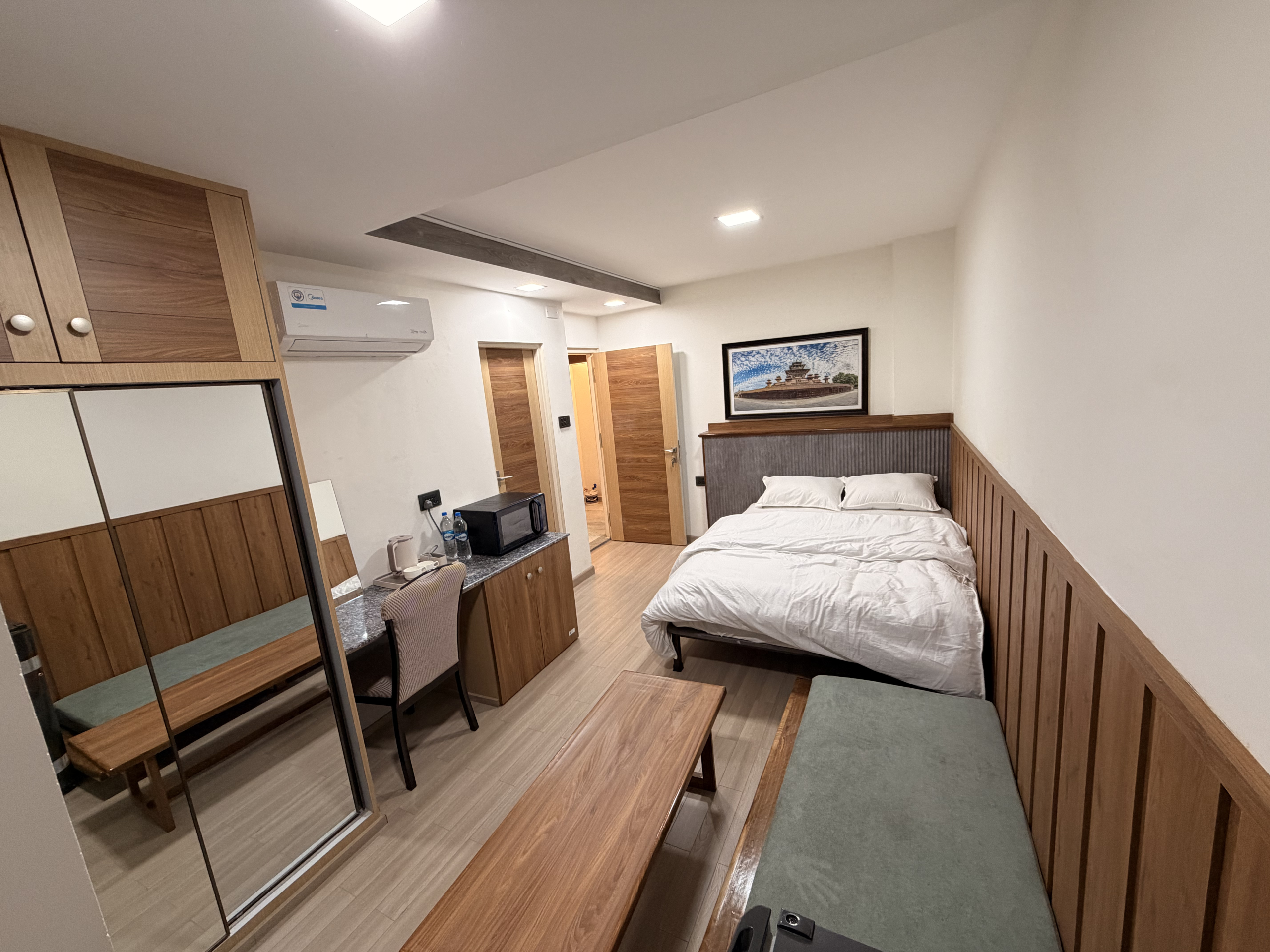 Ideal For: Solo travelers, backpackers, students on a budget. Layout: A compact, private room (typically 100-200 sq. ft.) within a larger apartment shared with other tenants. Bedding: One single bed or a twin-size bed. Bathroom: Attached private bathroom with a western-style toilet and a shower